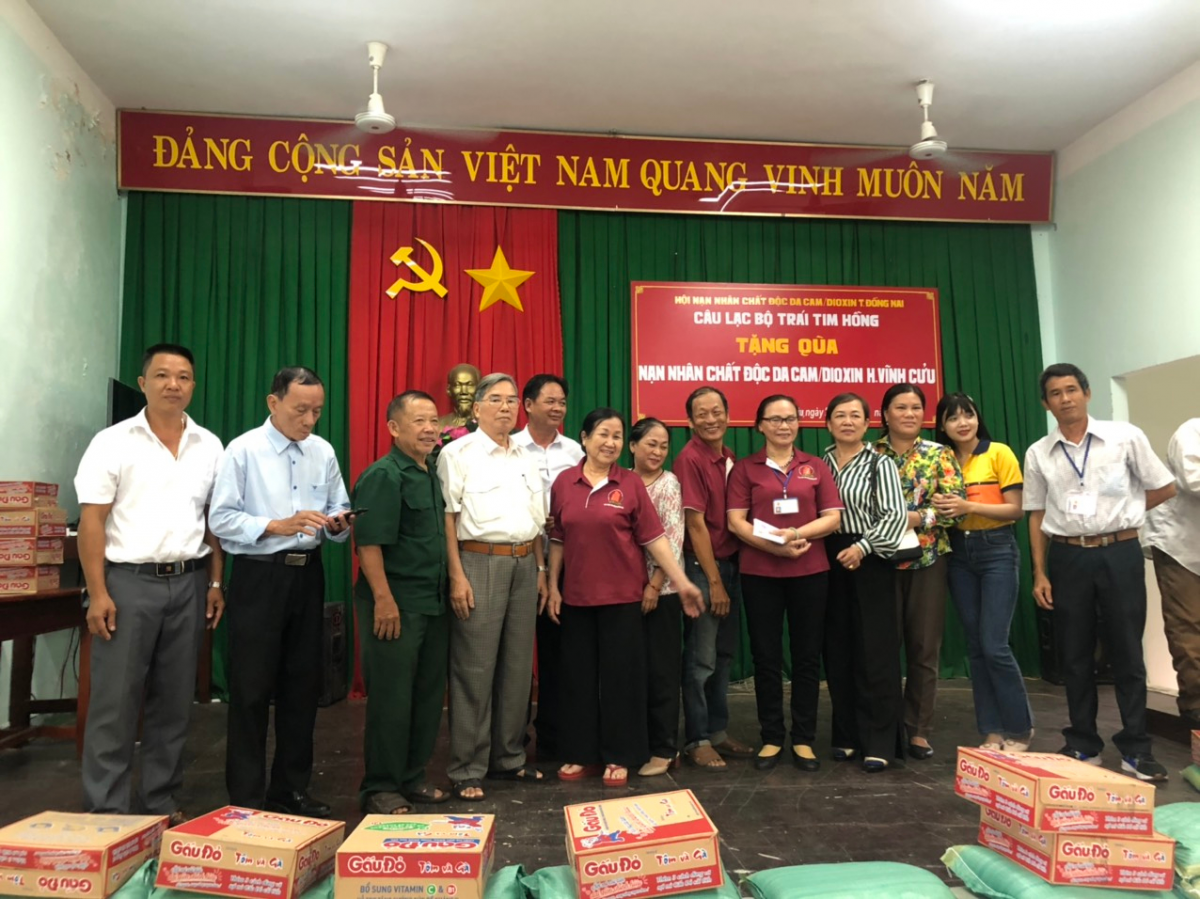 Tiến tới kỷ niệm 61 năm ngày Vì nạn nhân chất độc da cam Việt Nam. Câu Lạc bộ Trái Tim Hồng, Phường Long Bình Tân, thành phố Biên Hòa, tỉnh Đồng Nai (CLB trực thuộc Hội Nạn nhân chất độc da cam/dioxin tỉnh Đồng Nai). CLB gồm 30 hội viên, phần lớn là người cao tuổi, công chức nghỉ hưu có tinh thần cao, đóng góp vật lực để cùng chung tay góp sức với cộng đồng, xoa dịu phần nào nỗi đau da cam. Ngày 23 tháng 06 năm 2022, CLB và mạnh thường quân đã tới thăm và tặng quà cho nạn nhân chất độc da cam huyện Vĩnh Cửu, tỉnh Đồng Nai. Đồng thời, CLB tổ chức chương trình giao lưu văn nghệ với nạn nhân da cam của huyện Vĩnh Cửu. Tổng số gồm 50 phần quà: gạo, mì tôm, tiền mặt, trị giá trên 20 triệu đồng. Những người tham chương trình và nạn nhân chất độc da cam rất phấn khởi, vì đã nhận được món quà tinh thần nhân ái, quý báu của CLB Trái Tim Hồng mến tặng.