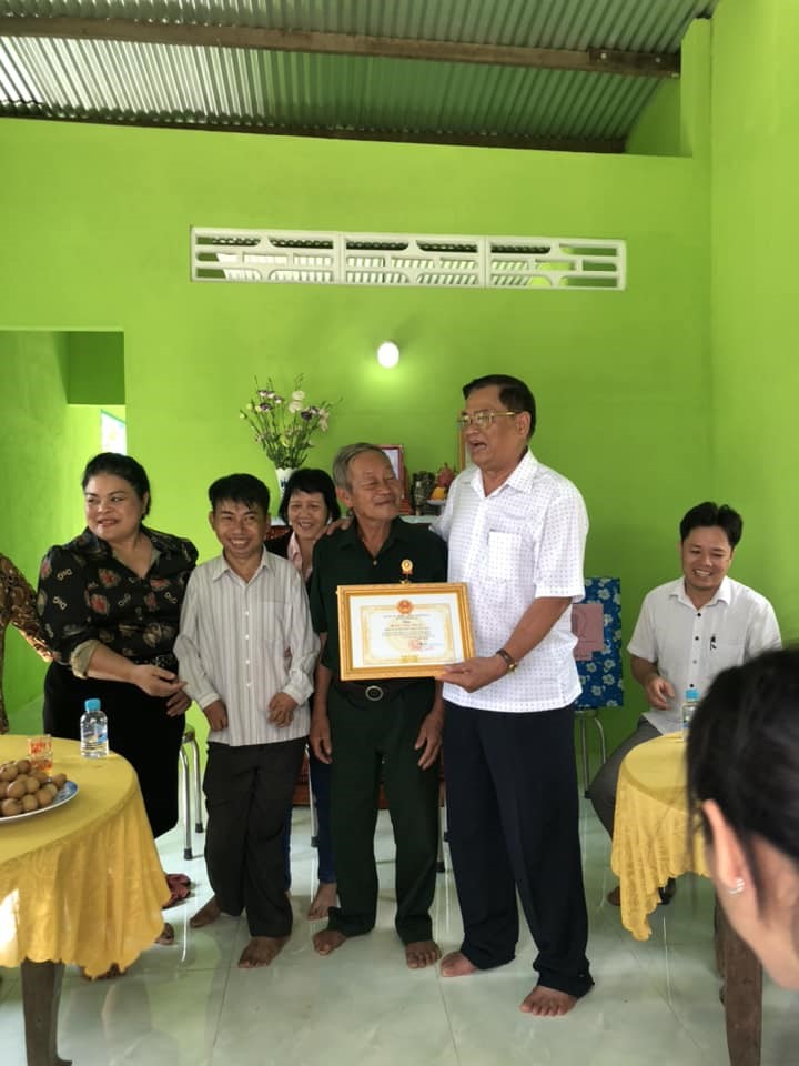 Ông Dương Anh (áo trắng) Chủ tịch Hội NNCĐDC/dioxin huyện Định Quán trao Quyết định tặng nhà cho gia đình nạn nhân.