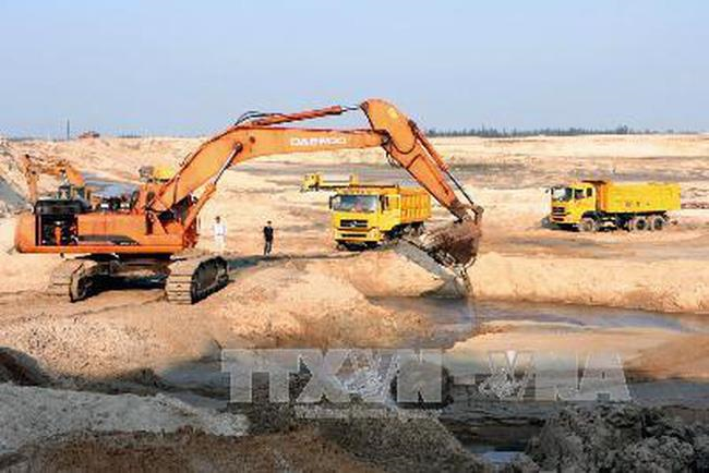 | Thi công bóc đất cát tại mỏ sắt Thạch Khê. Ảnh: TTXVN |
