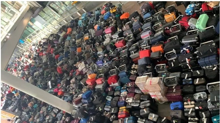Và sau đó là vấn đề hành lý. Tại sân bay Heathrow ở London là hàng núi hành lý khổng lồ chưa được xử lý và tất nhiên chủ nhân của chúng cũng đang mòn mỏi chờ đợi trong vô vọng.