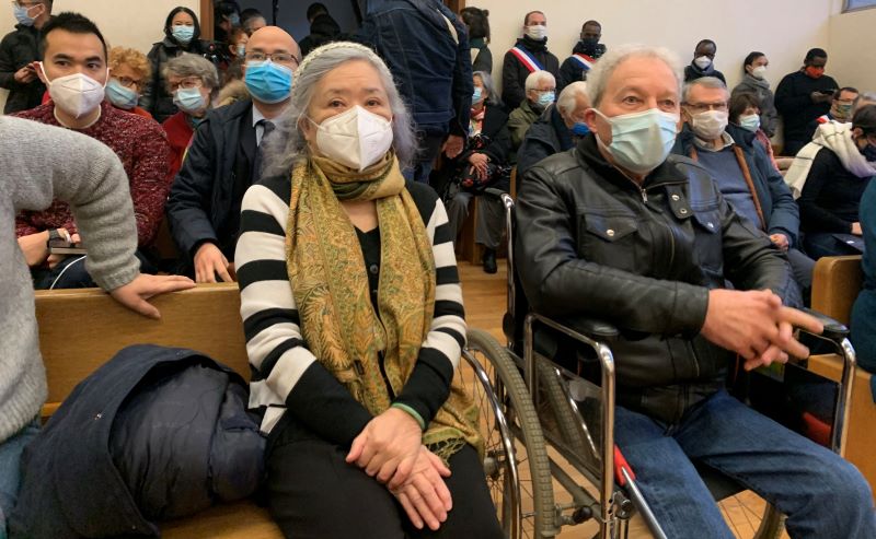 Bà Trần Tố Nga và ông André Bouny, nhà hoạt động xã hội người Pháp ủng hộ nạn nhân da cam/dioxin Việt Nam tại phiên tòa ngày 25-1.