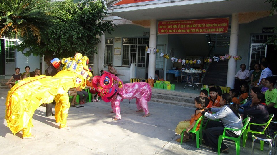 Nhân dịp Tết Trung thu năm 2019, Trung tâm Nuôi dưỡng, phục hồi chức năng nạn nhân chất độc da cam (NNCĐDC) Đức Phổ đã cùng với các mạnh thường quân, tổ chức Chương trình “ Vui hội trăng rằm” cho NNCĐDC và trẻ em khuyết tật đang được nuôi dưỡng tại Trung tâm.