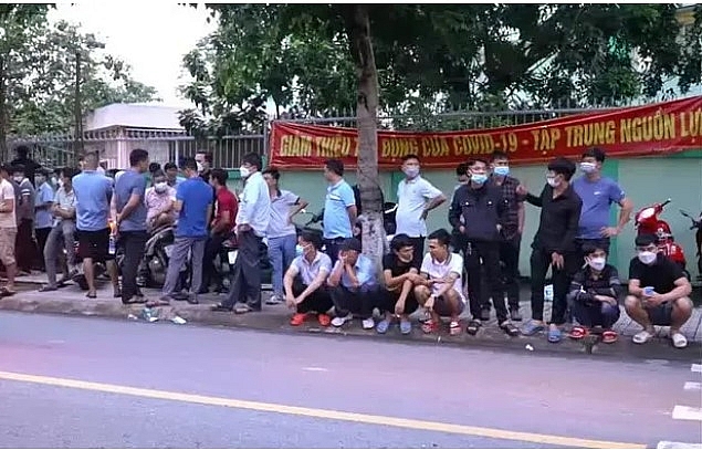Người dân xếp hàng dài trước cổng bệnh viện để chờ nhận tin người thân