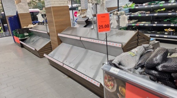 Nhiều siêu thị, cửa hàng hết sạch hàng. Hình ảnh các kệ hàng trống trơn đang trở nên phổ biến hơn ở châu Âu khi nguồn cung cấp thực phẩm và đồ dùng thiết yếu bị ảnh hưởng.