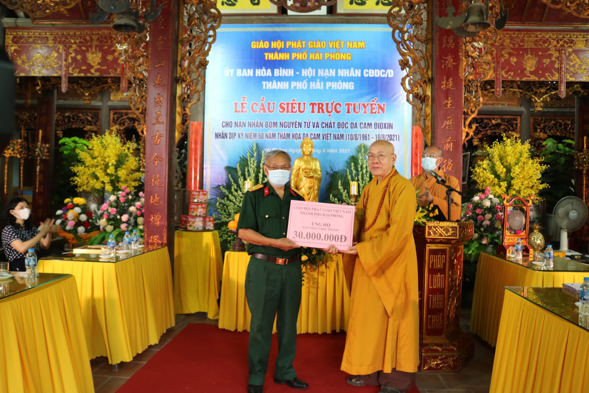 Ngày 10/8/2021, tại trụ sở Ban trị sự Giáo Hội Phật giáo Việt Nam thành phố Hải Phòng (số 121 Chùa Hàng, quận Lê Chân, Hải Phòng). Giáo Hội Phật giáo Việt Nam thành phố Hải Phòng, Ủy ban Hòa Bình, Hội NNCĐDC/dioxin Thành phố Hải Phòng tổ chức lễ cầu siêu trực tuyến cho NNCĐDC dưới sự chủ trì của Hòa thượng Thích Quảng Tùng. Tại lễ Cầu siêu, Hòa thượng Thích Quảng Tùng thay mặt Ban trị sự Giáo Hội Phật giáo Việt Nam thành phố Hải Phòng đã trao tặng 30 triệu đồng cho NNCĐDC Hải Phòng, nhân kỷ niệm 60 năm Thảm họa da cam Việt Nam (10/8/1961-10/8/2021).