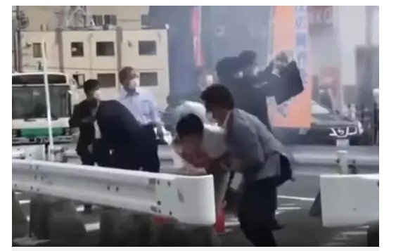 Sau khi viên đạn đầu tiên được bắn, ông Abe vẫn đứng trên bục phát biểu, còn nhóm vệ sĩ tỏ ra hoang mang vì tiếng súng. Họ quay lại và nhận ra tình huống nguy cấp nên đứng chắn giữa ông Abe và tay súng. Một vệ sĩ thậm chí vung chiếc cặp tài liệu màu đen lên che nhưng mọi chuyện đã quá muộn.