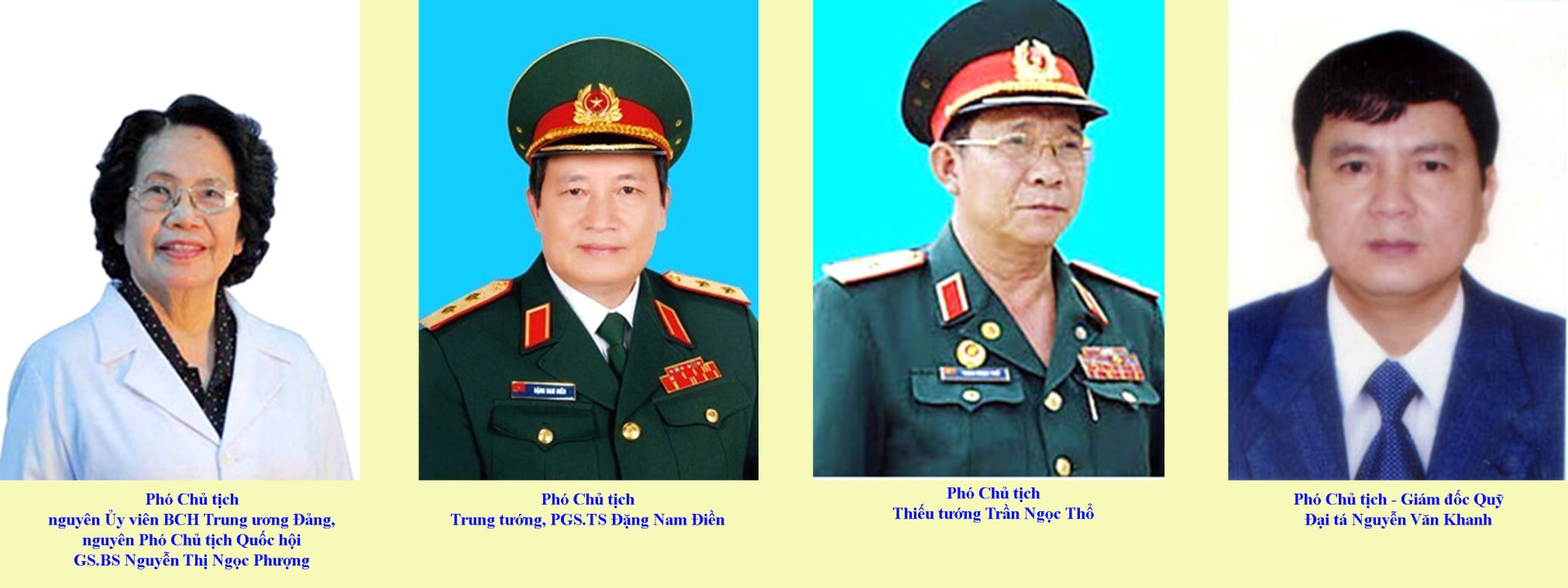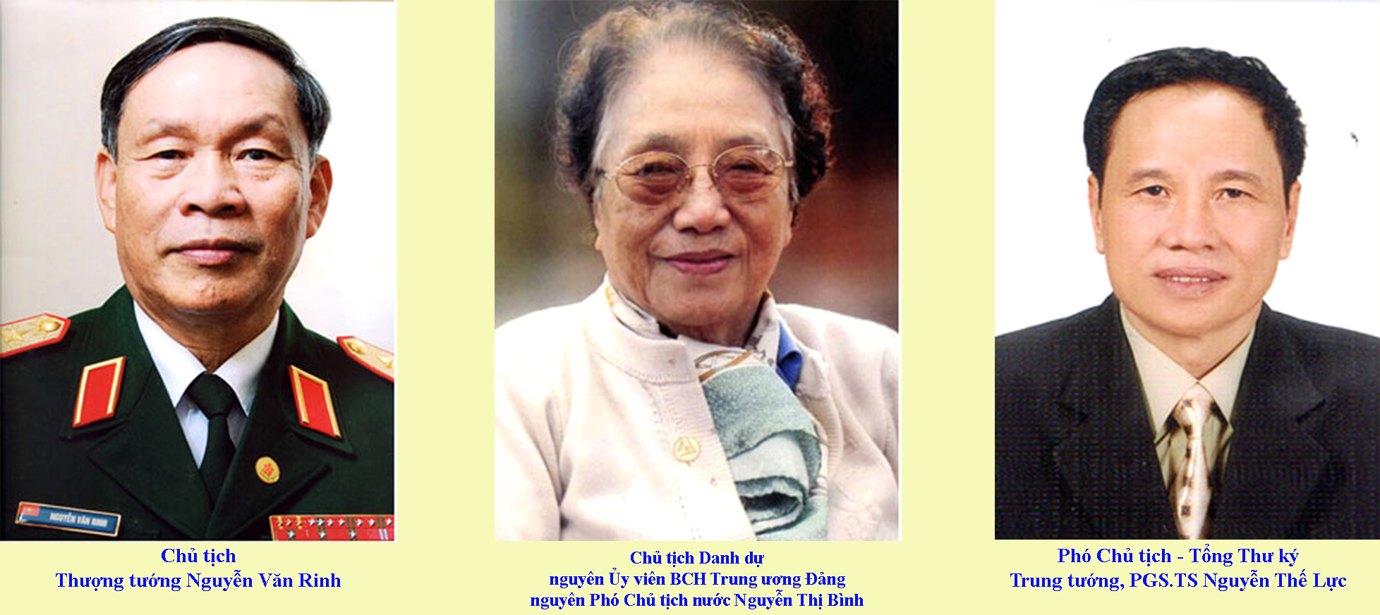 - Thượng tướng Đặng Vũ Hiệp, nguyên Uỷ viên Trung ương Đảng, nguyên Thứ trưởng Bộ Quốc phòng, nguyên Phó Chủ nhiệm Tổng cục Chính trị Quân đội Nhân dân Việt Nam, được cử làm Chủ tịch Hội;