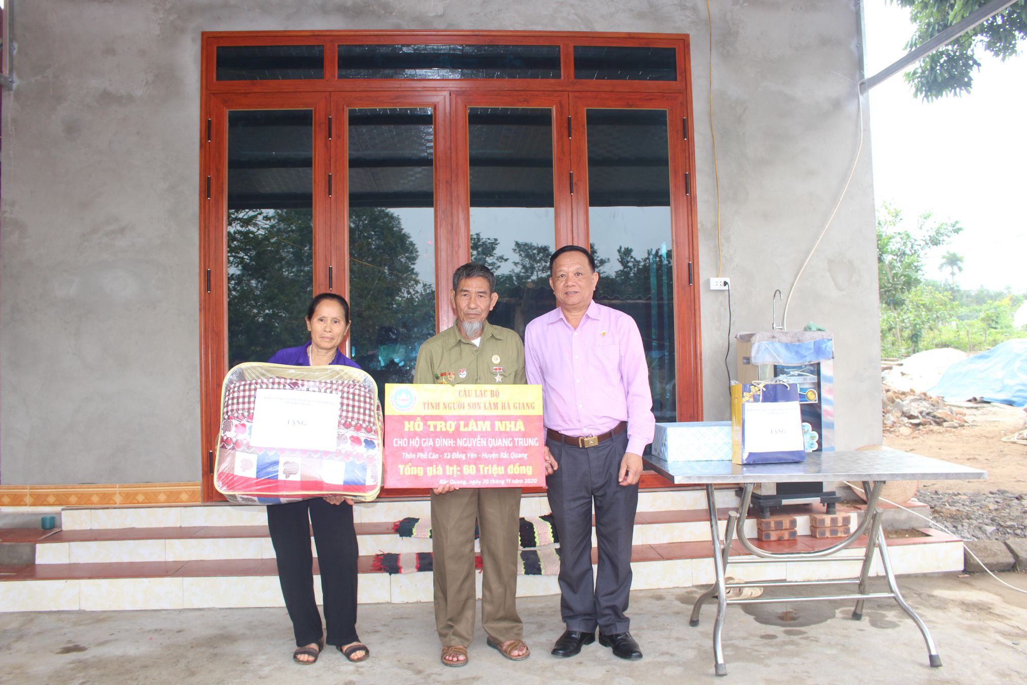 Ông Dương Tiến Soạn, Chủ tịch Hội NNCĐDC/dioxin tỉnh Hà Giang trao tượng trưng tiền hỗ trợ làm nhà và quà tặng gia đình ông Nguyễn Quang Trung
