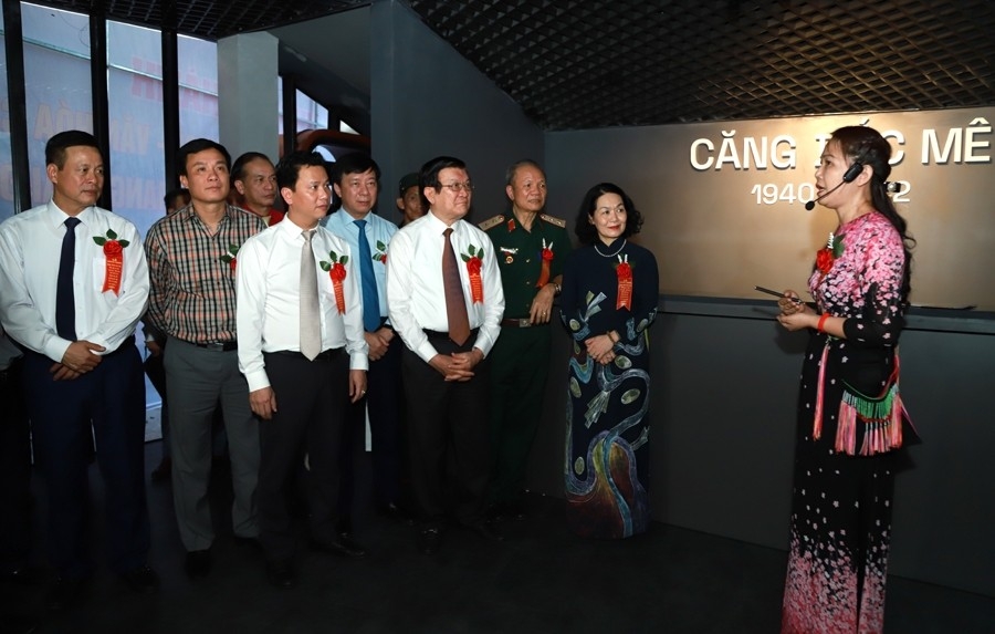| Các đại biểu tham quan Khu trưng bày, giới thiệu về Căng Bắc Mê và công trình bảo tồn, tôn tạo Căng Bắc Mê mới hoàn thành |