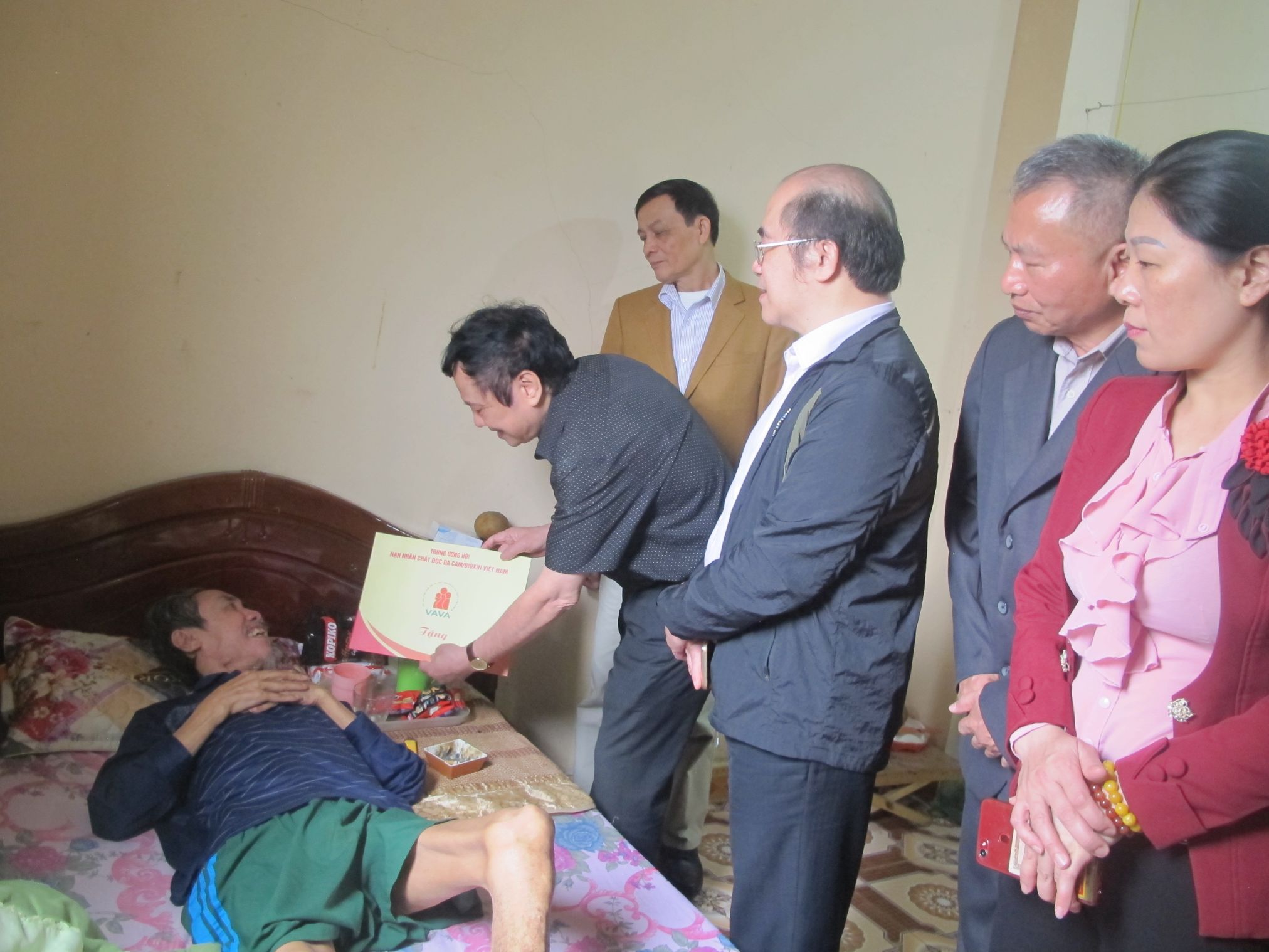 * Trước đó, Đoàn công tác của Trung ương Hội đã đi thăm và tặng quà cho các ông Bùi Hòa Bình (sinh năm 1952), Vũ Đức Nghinh (sinh năm 1950) ở tổ 1, phường Minh Khai và bà Cấn Thị Vui (sinh năm 1955) ở tổ 8, phường Trần Phú. Đây là những nạn nhân CĐDC đặc biệt khó khăn ở TP Hà Giang./.