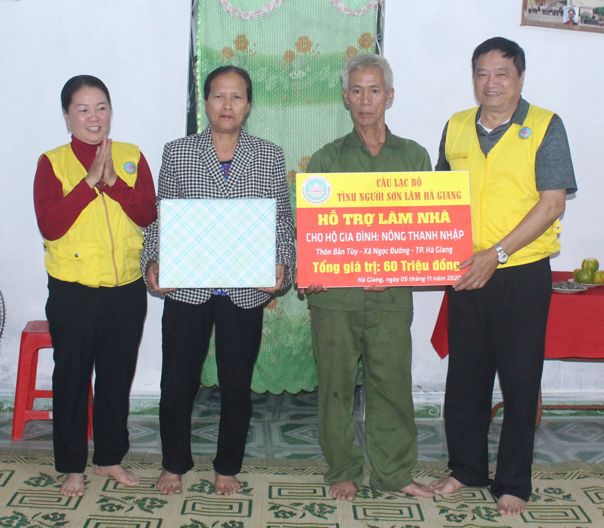 Ngày 5/11/2020, Hội NNCĐDC/dioxin tỉnh phối hợp với Câu lạc bộ Tình người Sơn Lâm Hà Giang tổ chức lễ khánh thành và bàn giao nhà mới cho ông Nông Thanh Nhập là NNCĐDC thuộc Bản Tùy, xã Ngọc Đường, thành phố Hà Giang. Đến dự có lãnh đạo cấp ủy, chính quyền xã Ngọc Đường, thôn bản, cùng đông đủ bà con và Thường trực Tỉnh hội, Thành hội, các hội viên của Câu lạc bộ Tình người Sơn Lâm Hà Giang.