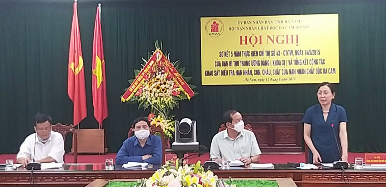 Phát biểu tại Hội nghị bà Đinh Thị Lụa, Tỉnh ủy viên, Phó Chủ tịch UBND tỉnh đã khẳng định việc triển khai thực hiện Chỉ thị 43-CT/TW của tỉnh Hà Nam nói chung và Hội NNCĐDC/dioxin nói riêng được quán triệt, triển khai thực hiện chặt chẽ, có hiệu quả từ tỉnh xuống cơ sở. Thông qua triển khai thực hiện công tác chăm sóc giúp đỡ nạn nhân, công tác xây dựng tổ chức và hoạt động của các cấp Hội có chuyển biến tích cực hiệu quả cao và ghi nhận những ý kiến đề xuất của các cấp Hội trong việc giải quyết chính sách, công tác chăm sóc nạn nhân để tiếp tục lãnh đạo chỉ đạo các cấp, các ngành trong tỉnh thực hiện tốt theo tinh thần Chỉ thị 43-CT/TW của Ban Bí thư, đồng thời đề nghị Trung ương Hội tiếp tục quan tâm tạo điều kiện để Hội NNCĐDC/dioxin tỉnh Hà Nam hoàn thành tốt nhiệm vụ được giao.