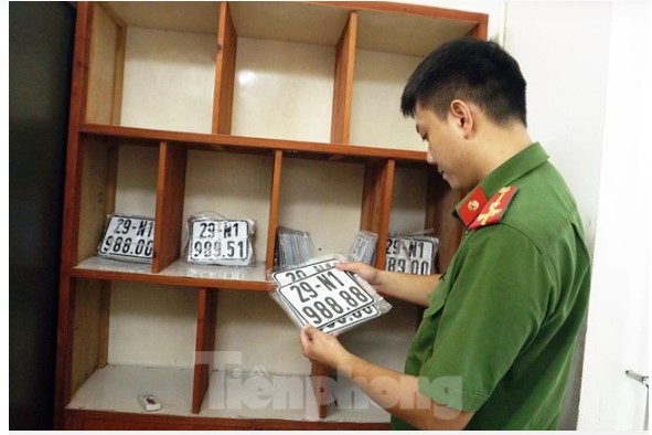 | Người dân chỉ mất vài phút làm thủ tục và bấm biển số. Ảnh: Thanh Hà |