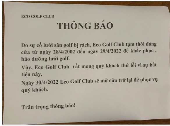 Thấy vậy, tôi liền tức tốc chạy vào trong sân golf để gặp quản lý sân và cảnh báo về sự mất an toàn của sân golf, gây gây nguy hiểm cho dân cư nơi đây nhất là các cháu nhỏ. Nhưng đến nơi tôi không thể gặp bất cứ một ai có trách nhiệm quản lý và vận hành sân golf để đứng ra làm việc", anh Đ. phản ánh.