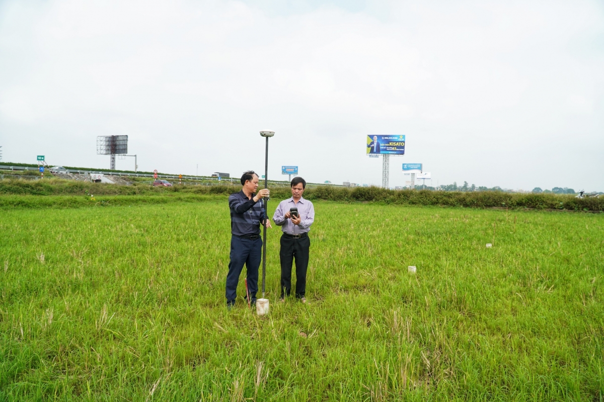 | Cắm mốc giải phóng mặt bằng vành đai 4 đoạn giao cắt với cao tốc Pháp Vân - Cầu Giẽ (huyện Thường Tín, Hà Nội). Ảnh: Ngọc Tân. |