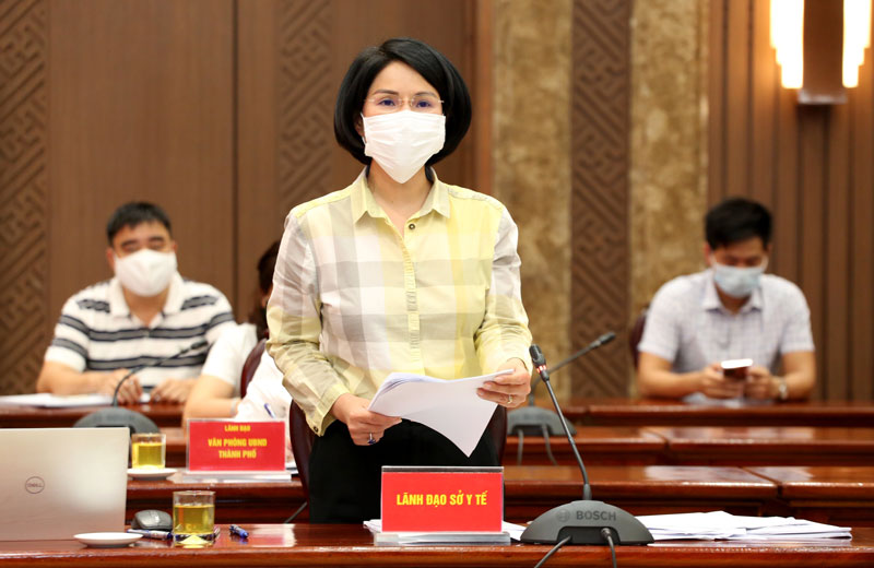 Giám đốc Sở Y tế Hà Nội Trần Thị Nhị Hà báo cáo tại hội nghị.