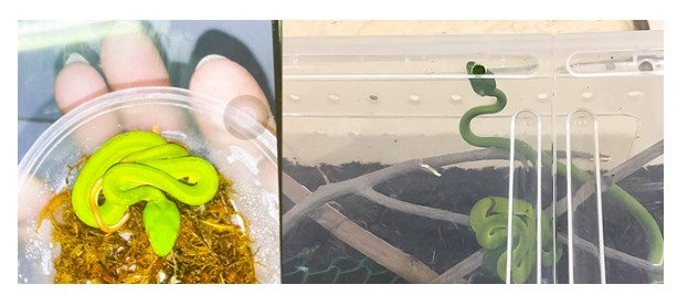 Rắn lục đuôi đỏ mà bé trai nuôi làm thú cưng (Ảnh: Gia đình bệnh nhi cung cấp)