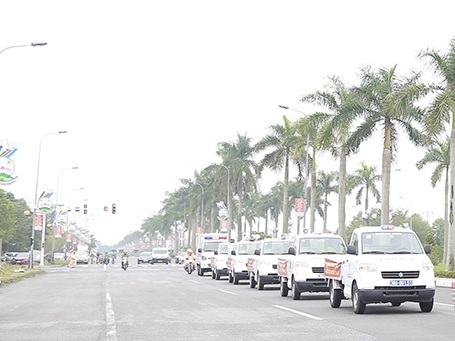 | Ngay sau lễ ra quân, các lực lượng đã diễu hành trên một số tuyến phố tại TP Hà Tĩnh |