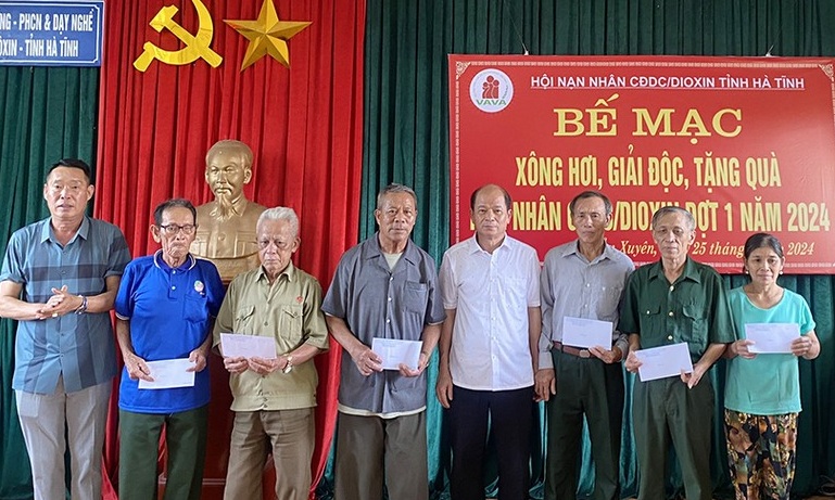 Bước đầu, Hội tỉnh Hà Tĩnh phối hợp với Hội NNCĐDC/dioxin - Bảo trợ người khuyết tật và trẻ mồ côi huyện Thạch Hà tổ chức xông hơi, giải độc và tặng quà cho NNCĐDC trong thời gian từ ngày 9 - 15/5/2024. Trong 7 ngày thực hiện liệu trình xông hơi giải độc, các nạn nhân đã được kiểm tra sức khoẻ; uống khoáng chất, vitamin, các nguyên tố vi lượng; thực hiện xông hơi, giải độc theo quy trình nghiêm ngặt, cũng như chế độ ăn uống phù hợp, kết hợp rèn luyện thể dục thể thao, sau điều trị, 13/13 nạn nhân đạt được kết quả tích cực, các chỉ số sức khỏe hồi phục rõ rệt; hạn chế được các bệnh về thần kinh, đau nhức vai gáy, tê bì các chi hay giảm thiểu các triệu chứng về tim mạch, đường huyết...