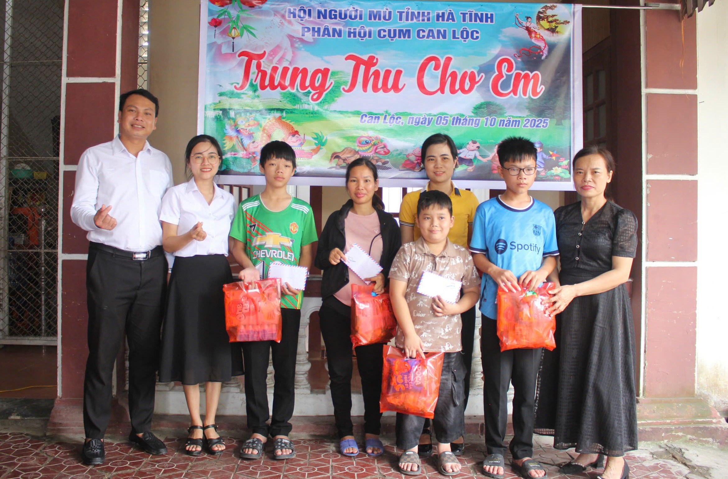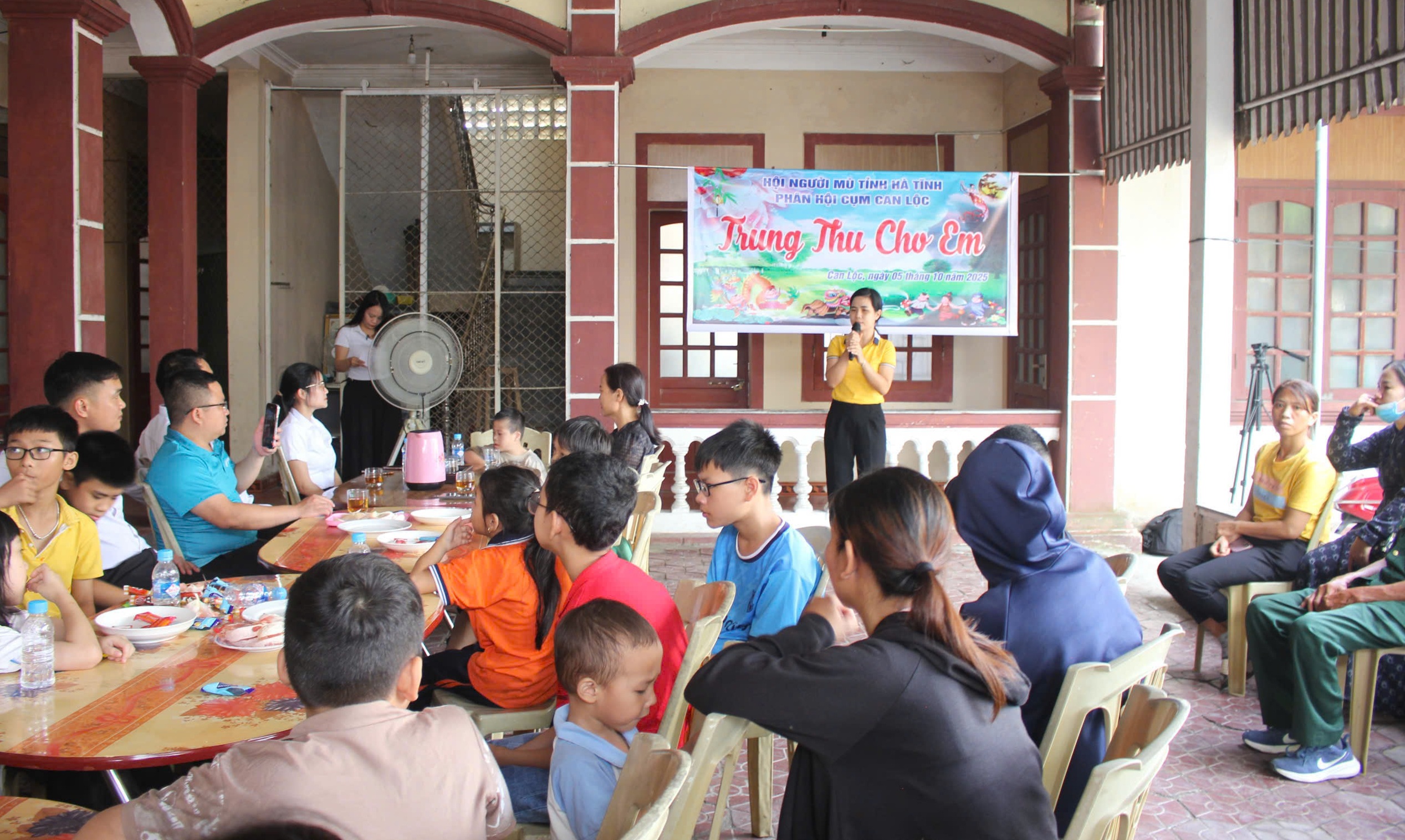 Các đại biểu đã cùng vui đón Tết Trung thu truyền thống với trẻ em khiếm thị và con của hội viên có hoàn cảnh khó khăn trên địa bàn. Hiện Phân hội Cụm Can Lộc có gần 500 hội viên người mù và 35 trẻ em khiếm thị và con hội viên có hoàn cảnh khó khăn.