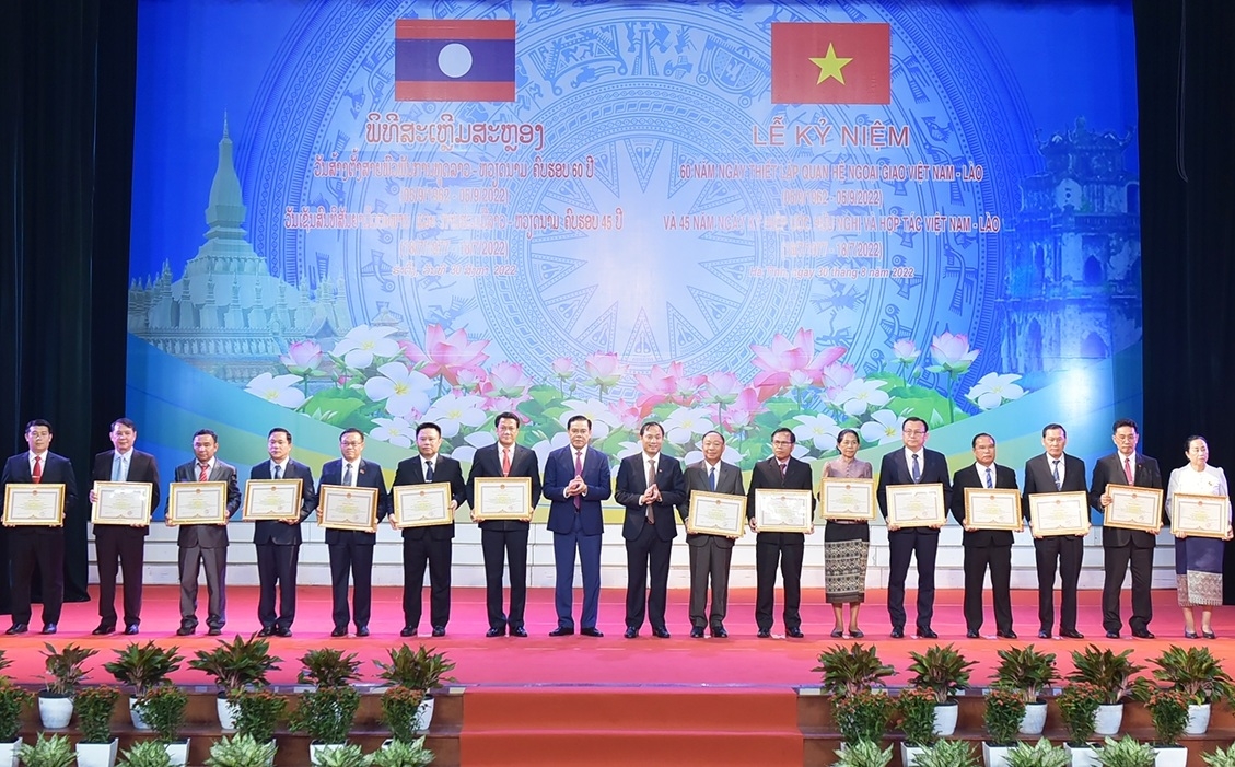 Nhân dịp này, UBND tỉnh Hà Tĩnh đã trao bằng khen cho 25 tập thể và 50 cá nhân các tỉnh của Lào đã có thành tích xuất sắc trong gìn giữ, vun đắp tình đoàn kết hữu nghị truyền thống đặc biệt và hợp tác toàn diện giữa 2 nước Việt Nam – Lào.