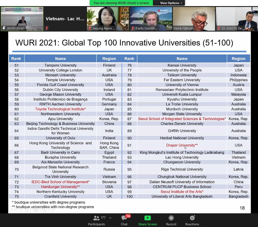 Trường ĐH Trà Vinh (xếp hạng 71) và trường ĐH Lạc Hồng (xếp hạng 93) trong Top 100 WURI Rangking 2021. Ảnh: Tiền Phong