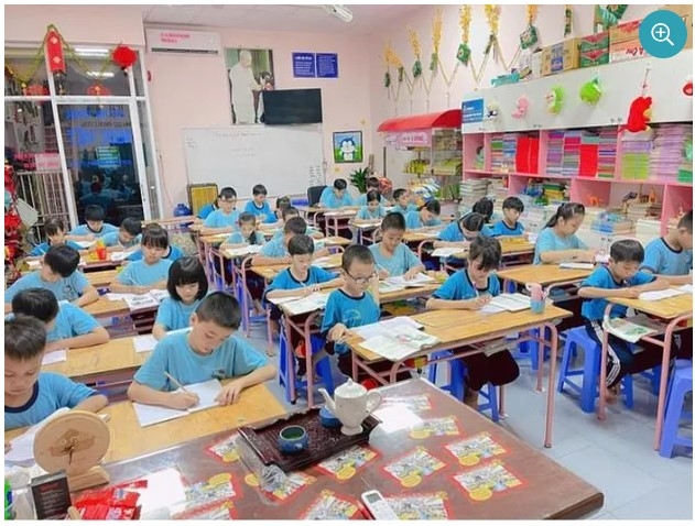 | Lớp học tình thương Ngọc Việt do anh Bình sáng lập luôn đầy ắp tiếng cười. |