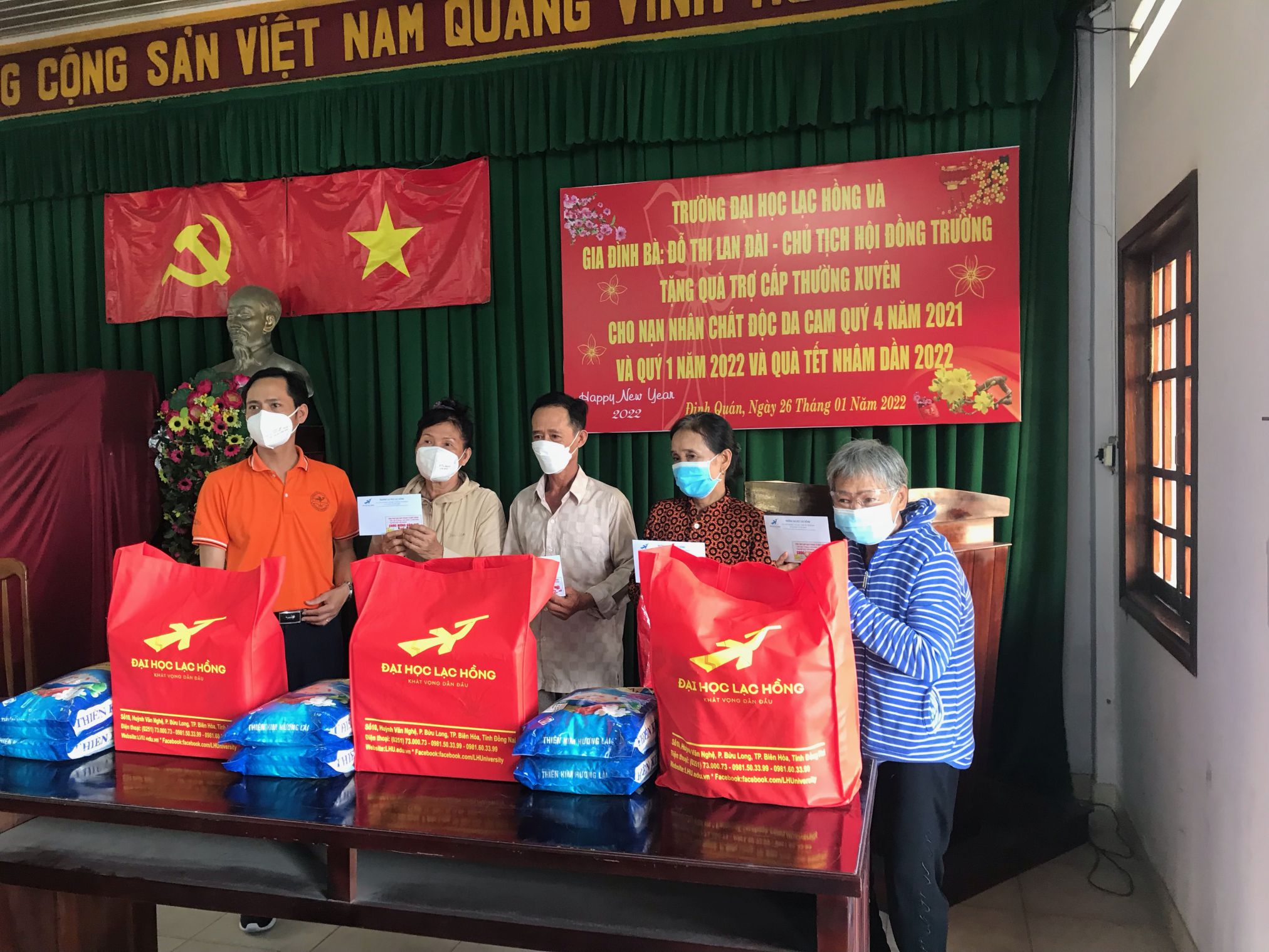 Ngày 26/01/2022, Trường Đại học Lạc Hồng và gia đình cô Đỗ Thị Lan Đài (Chủ tịch Hội đồng trường), thầy Đỗ Khôi Nguyên (Phó Hiệu trưởng nhà trường) đi thăm, tặng quà tết Nguyên đán Nhâm Dần 2022 và trợ cấp quý IV/2021, quý I/2022 cho 20 nạn nhân chất độc da cam tại Huyện Định Quán, tỉnh Đồng Nai