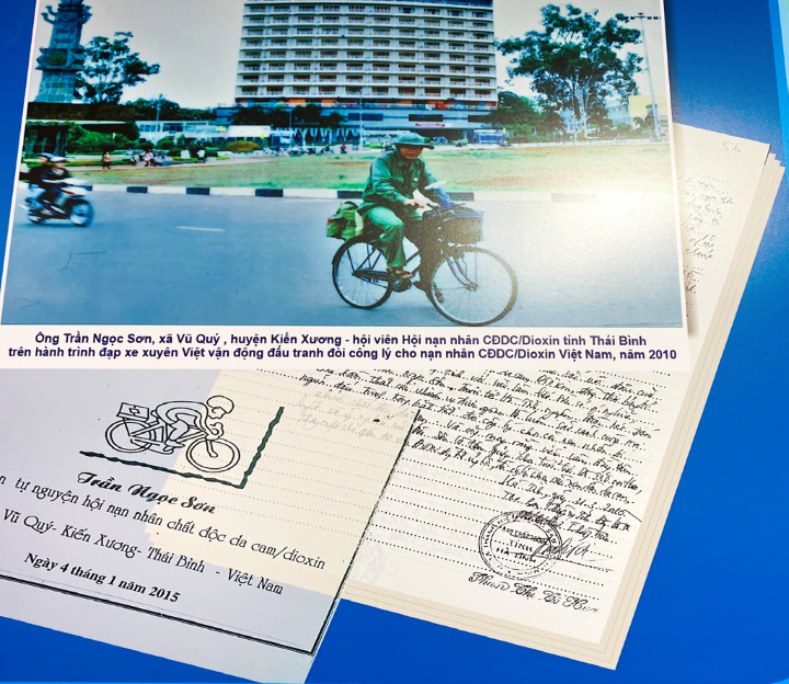 Đó là hành trình của 12 năm trước, thương binh CCB Trần Ngọc Sơn đã dành 6 tháng đạp xe xuyên Việt đến 63 tỉnh, thành phố trong cả nước để thực hiện tâm nguyện “tự nguyện vận động đấu tranh đòi công lý cho NNCĐDC Việt Nam”. Thật đáng khâm phục!