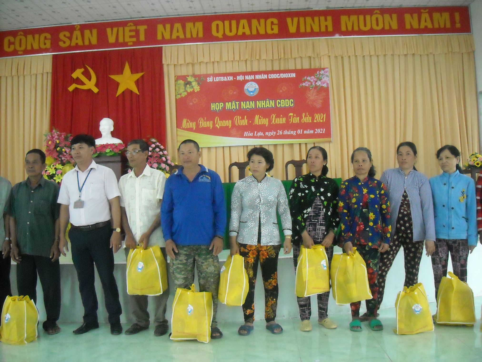 Nhân dịp Tết Nguyên đán Tân Sửu 2021 Hội NNCĐDC/dioxin tỉnh Hậu Giang tổ chức 14 điểm gặp mặt NNCĐDC “Mừng Đảng Quang Vinh, mừng xuân Tân Sửu 2021” . Tại các điểm gặp mặt, lãnh đạo Hội đã trân trọng thăm hỏi, chúc tết và tặng 1.129 suất quà, với số tiền 413 triệu 100 nghìn đồng.