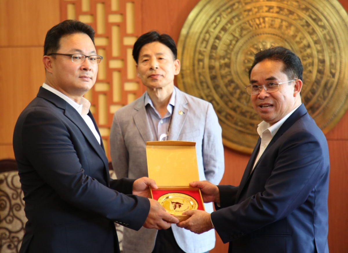 | Lãnh đạo UBND tỉnh chụp ảnh lưu niệm cùng đoàn Hiệp hội Thương binh Quốc gia Hàn Quốc (KDVO) |