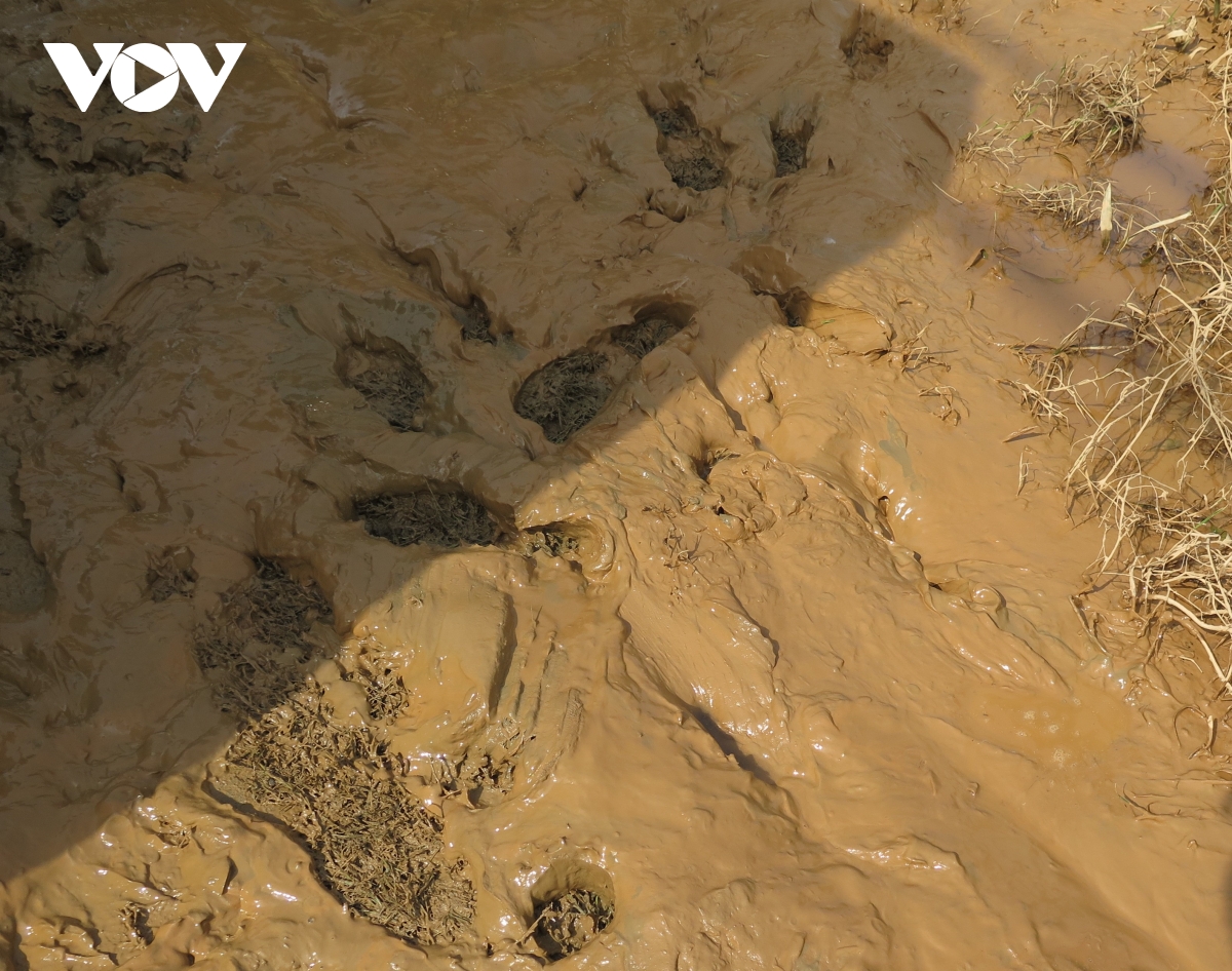 Bùn đất ngập ngụa nơi lũ vừa rút.