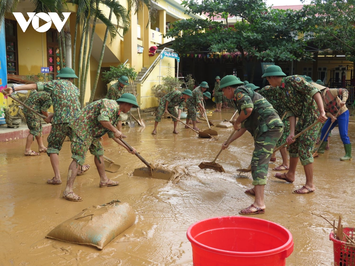 Lực lượng vũ trang Quân khu 4 giúp dân Quảng Bình khắc phục hậu quả mưa lũ.