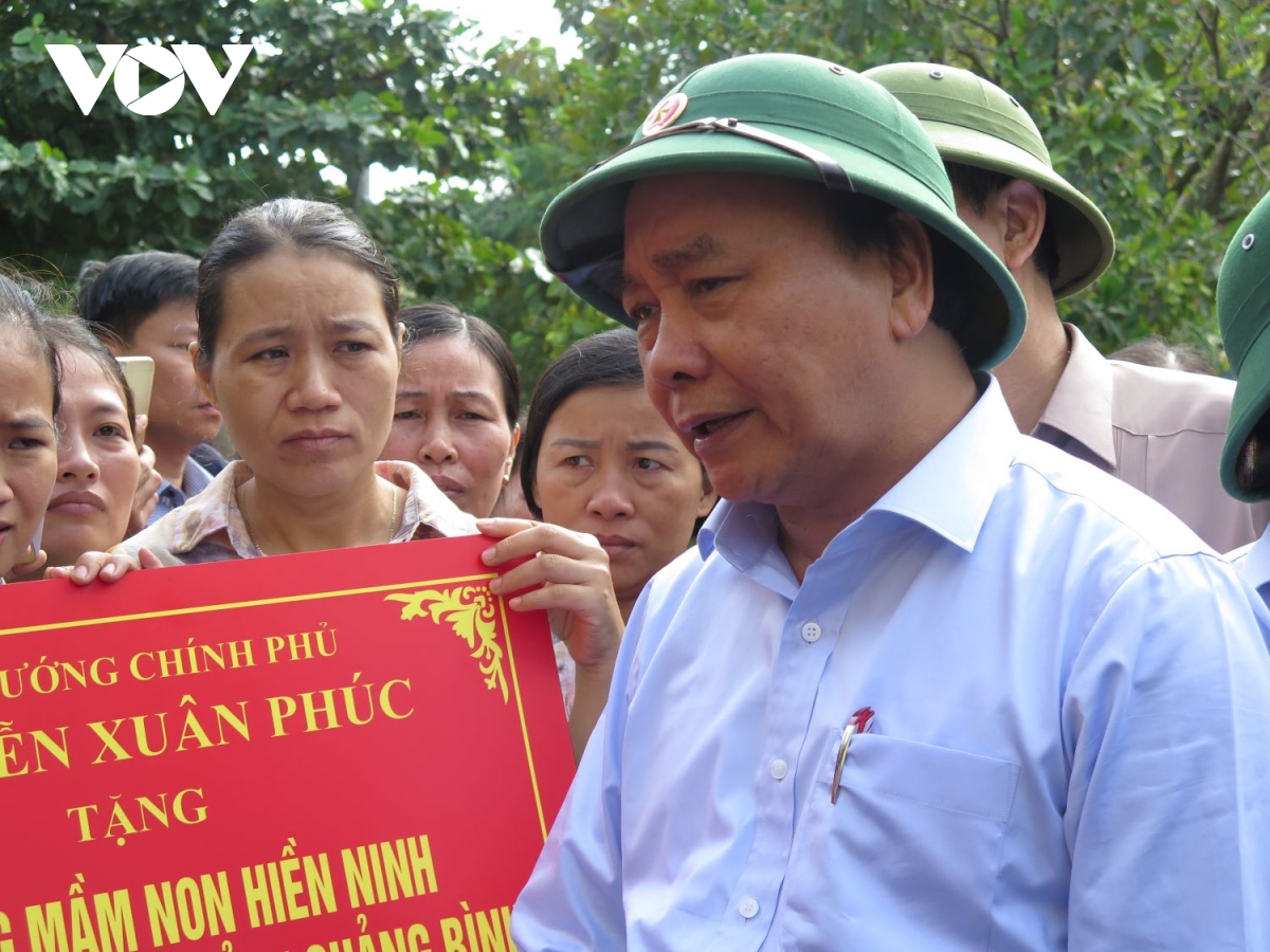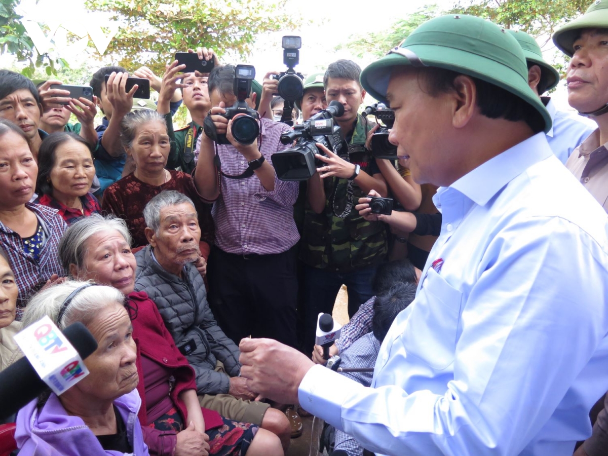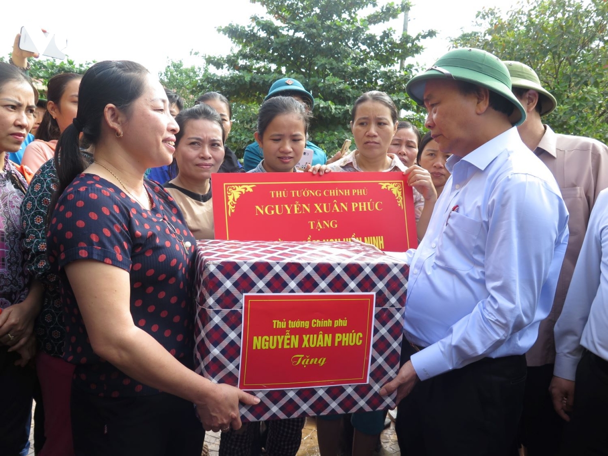 Thủ tướng Nguyễn Xuân Phúc ân cần thăm hỏi, động viên bà con vùng lũ.