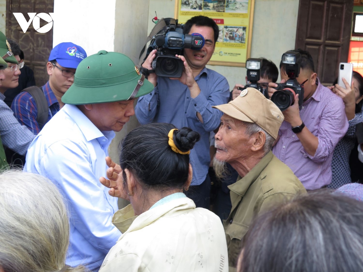 Thủ tướng thăm động viên bà con vùng rốn lũ thôn Đồng Tư, xã Hiền Ninh, tỉnh Quảng Ninh.
