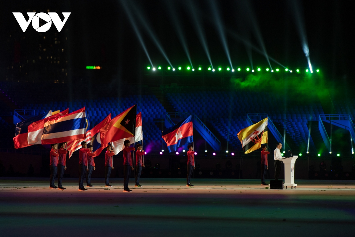 Chương trình mở đầu với lễ diễu hành, lễ thượng cờ Việt Nam và cử hành Quốc ca, thượng cờ Đông Nam Á và SEA Games 31.