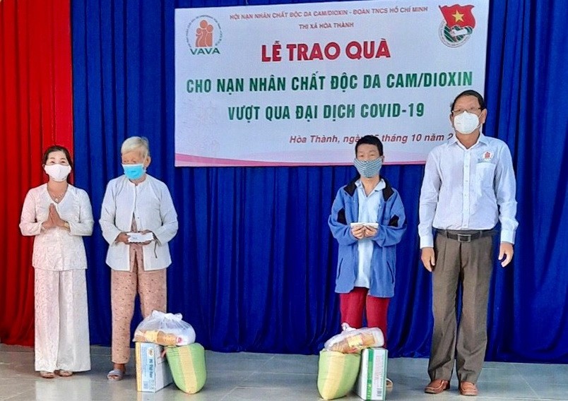 Chủ tịch Hội NNCĐDC/dioxin thị xã Hòa Thành tặng quà cho nạn nhân