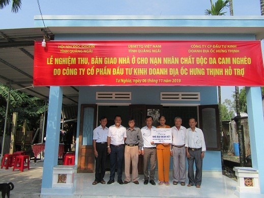 Vừa qua Hội NNCĐDC/dioxin tỉnh, Ủy ban MTTQ Việt Nam tỉnh phối hợp với Hội NNCĐDC/dioxin huyện Tư Nghĩa nghiệm thu và bàn giao Nhà Đại đoàn kết cho NNCĐDC Nguyễn Thị Hường, thôn An Hòa Nam, xã Nghĩa Thắng, huyện Tư Nghĩa. Tham dự có ông Phan Đình Thắng, Ủy viên Thường trực, Trưởng Ban phong trào UBMTTQVN tỉnh; ông Hồ Thanh Tùng, Phó Chủ tịch Hội NNCĐDC/dioxin tỉnh; Lãnh đạo Hội NNCĐDC/dioxin huyện, xã và đại diện chính quyền địa phương.