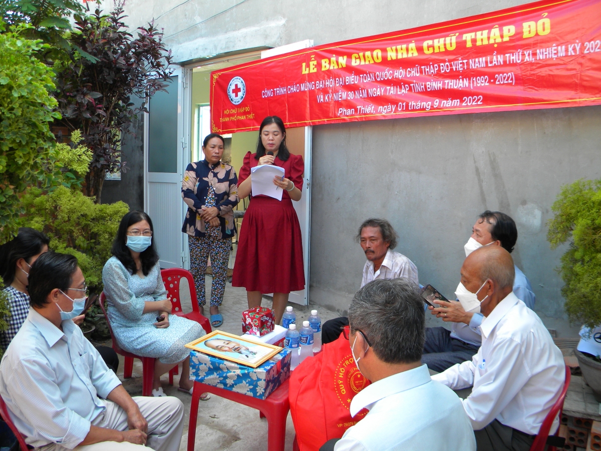Ngày 01/9/2022, nhân dịp kỷ niệm 77 năm ngày Quốc khánh nước (2/9/1945 – 2/9/2022); Hội Chữ thập đỏ thành phố Phan Thiết, tổ chức lễ bàn giao nhà tình thương cho gia đình ông Nguyễn Văn Hồng, khu phố 4, phường Đức Long, thành phố Phan Thiết, tỉnh Bình Thuận. Đến dự buổi lễ có đại diện lãnh đạo UBND thành phố; UBMTTQ; Hội NNCĐDC/dioxin thành phố; cùng lãnh đạo địa phương; Ban Điều hành khu phố và đông đảo bà con xóm phố đến chung vui cùng gia đình anh Hồng.