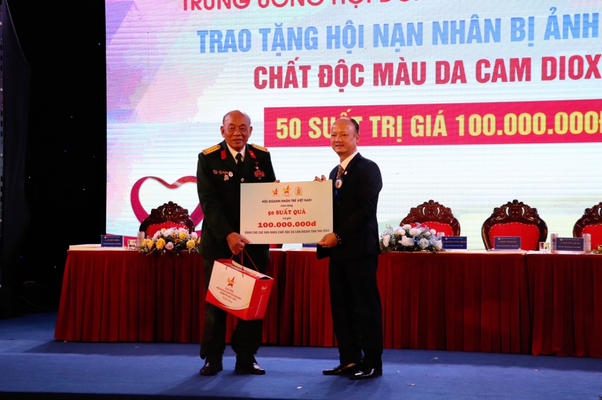 Các đồng chí lãnh đạo đã trao 50 suất quà với tổng trị giá 100 triệu đồng cho nạn nhân chất độc da cam tỉnh Thái Bình. Gửi lời thăm hỏi ân cần, chia sẻ với những khó khăn, mất mát mà nạn nhân chất độc da cam đang hàng ngày phải gánh chịu; đồng thời mong muốn những phần quà nhỏ sẽ là nguồn động viên về tinh thần để những nạn nhân và gia đình nạn nhân chất độc da cam vơi bớt khó khăn, vươn lên trong cuộc sống.