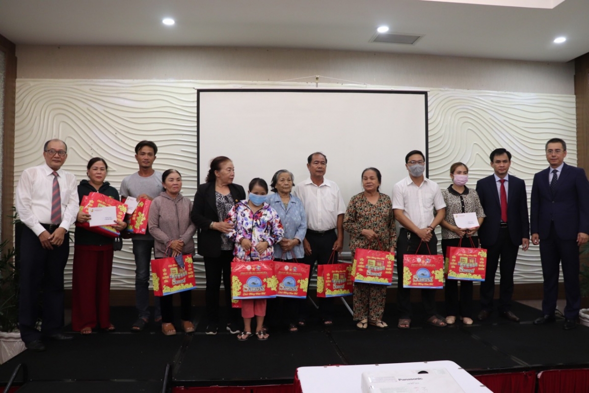 | Lãnh đạo Hội DNT và lãnh đạo Tỉnh hội Khánh Hòa trao quà cho nạn nhân |