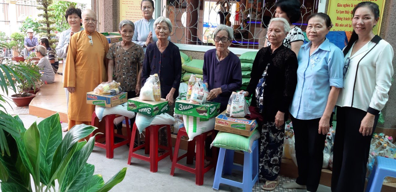 Lãnh đạo Tỉnh hội cùng nhà tài trợ trao quà cho nạn nhân