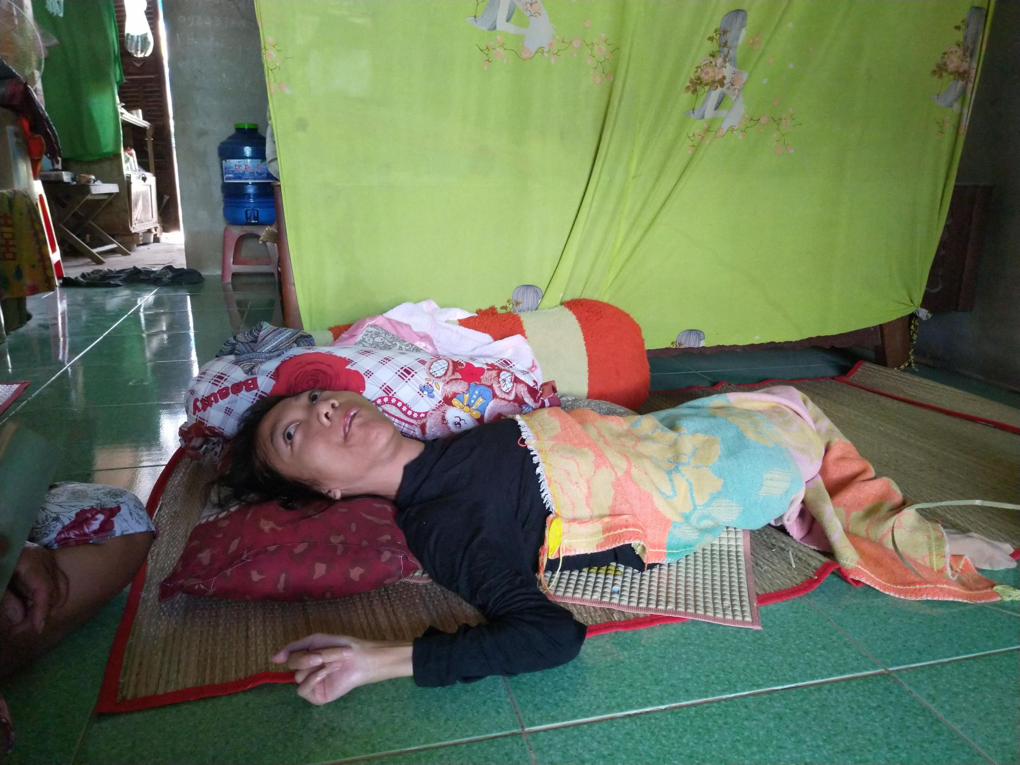 Nạn nhân Vũ Trường Dương, sinh năm 1986, ngụ ấp Xóm Vong xã Thạnh Phú bệnh thần kinh phân liệt, câm, điếc, phải sống trong môi trường biệt lập khép kín,