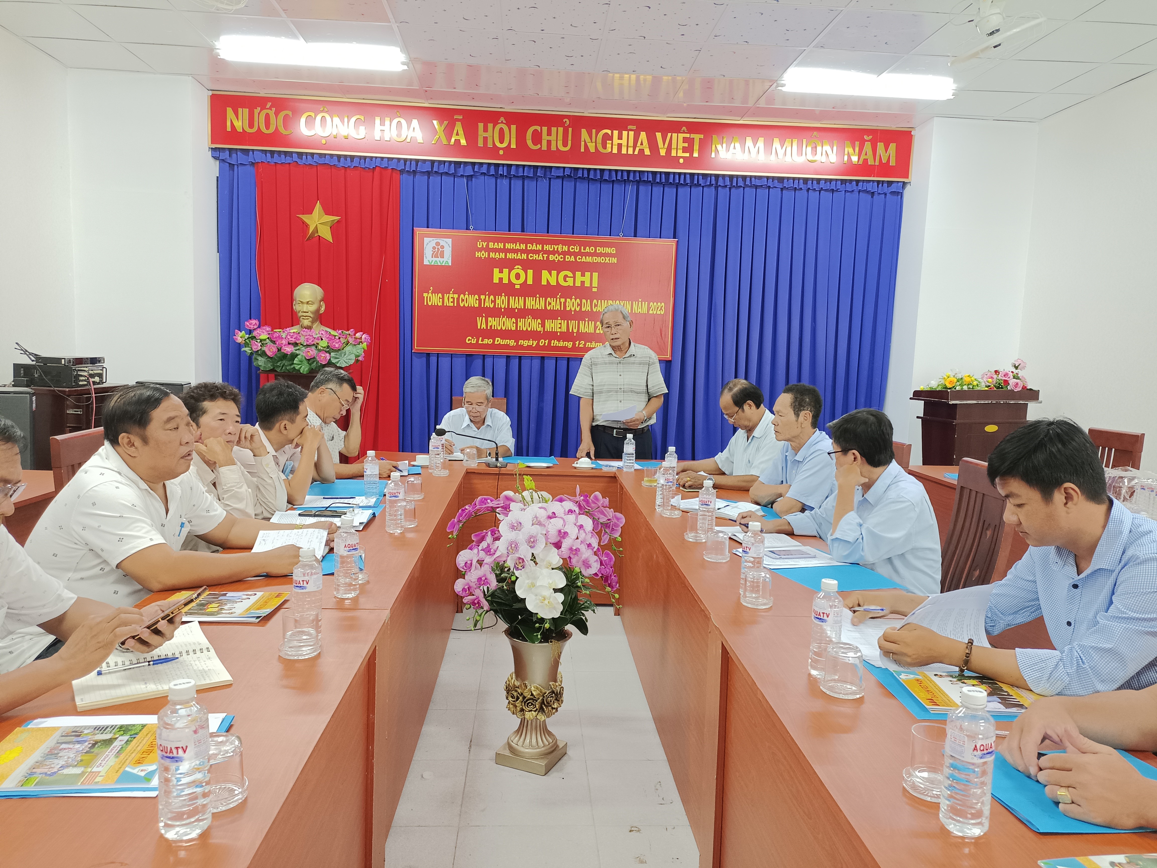 Ông Nguyễn Hùng, Chủ tịch Hội NNCĐDC/dioxin tỉnh Sóc Trăng phát biểu tại Hội nghị đã ghi nhận sự cố gắng nỗ lực của cán bộ Hội huyện Cù Lao Dung trong năm 2023, sang năm 2024 cần tiếp tục triển khai Công văn số 55-CV/HU ngày 09/10/2015 của Huyện ủy Cù Lao Dung về việc triển khai thực hiện Chỉ thị số 43-CT/TW ngày 14/5/2015 của Ban Bí thư về tăng cường sự lãnh đạo của Đảng đối với công tác giải quyết hậu quả chất độc hóa học do Mỹ sử dụng trong chiến tranh ở Việt Nam và Quyết định số 2215/QĐ-TTg ngày 28/12/2021 của Thủ tướng Chính phủ ban hành Kế hoạch hành động quốc gia khắc phục hậu quả chất độc hóa học/dioxin sau chiến tranh ở Việt Nam giai đoạn 2021-2030. Kiện toàn tổ chức Hội, phát triển từ 30 hội viên trở lên, tăng cường vận động nguồn lực, vận động tặng quà nhân dịp lễ, tết; vận động xây nhà cho nạn nhân đặc biệt khó khăn về nhà ở từ 1 tỷ đồng trở lên. Hướng dẫn nạn nhân bị nhiễm chất độc hóa học hoàn chỉnh hồ sơ để cơ quan có thẩm quyền xem xét quyết định hưởng chế độ theo quy định. Tiếp tục theo dõi các hộ vay vốn sinh kế, thu hồi để luân chuyển cho hộ khác khi đến hạn; phấn đấu năm 2024 hoàn thành tốt mọi nhiệm vụ theo chức năng, nhiệm vụ của Hội./.