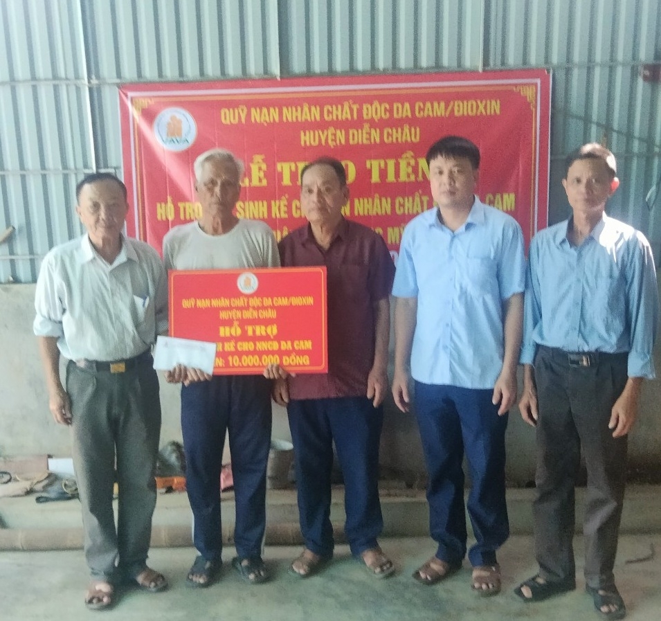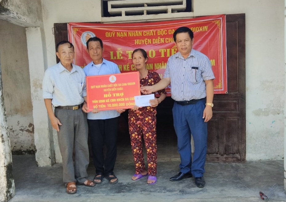 Trong ngày 21/9 mới đây Huyện hội Diễn Châu đã trao 40 triệu đồng hỗ trợ sinh kế cho 4 gia đình NNCĐDC là gia đình các ông Nguyễn Ngọc Kiên, xã Diễn Minh; Lê Minh Tuân, xã Diễn Mỹ; Lê Thanh Bình, xã Diễn Hải và Võ Văn Hiển, xã Diễn Liên, mỗi gia đình 10 triệu đồng.