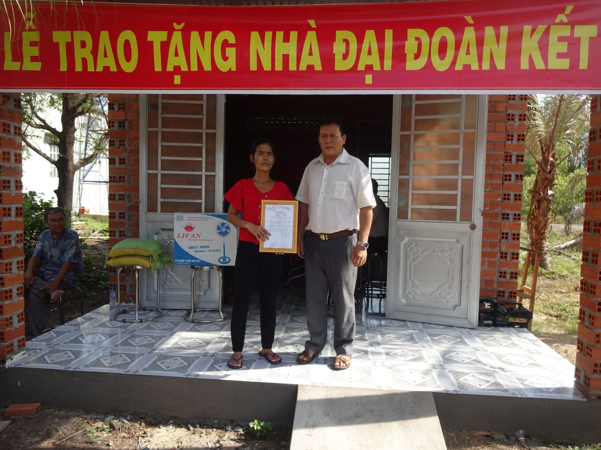 Ông Phan Văn Tân, Chủ tịch Ủy ban nhân dân xã Thanh Phước, huyện Gò Dầu đã trao Quyết định tặng nhà Đại đoàn kết của xã cho bà Đỗ Thị Hồng Gấm.