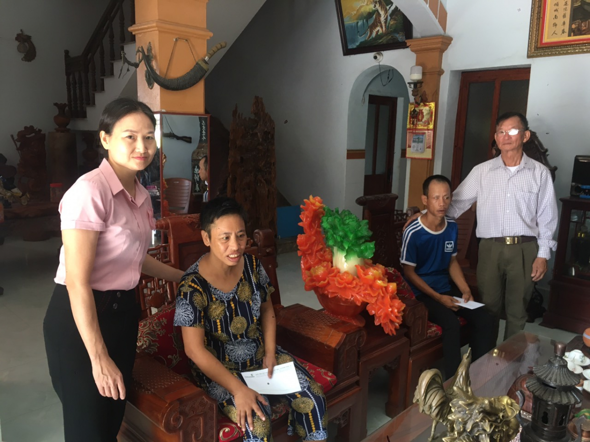 | Ngân hàng Vietcombank và Hội huyện Hải Hà trao quà cho nạn nhân chất độc da cam (thế hệ thứ 2), Nguyễn Thị Út , thôn 6 xã Quảng Long, huyện Hải Hà |