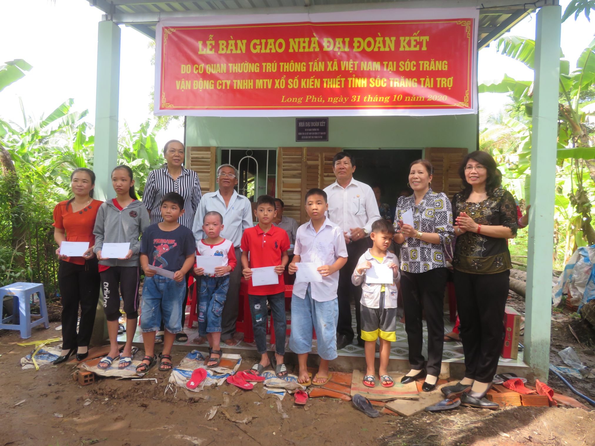 Sáng 31/10/2020, Hội NNCĐDC/dioxin tỉnh Sóc Trăng phối hợp với Thông tấn xã Việt Nam (Phân xã Sóc Trăng), Công ty TNHH Một thành viên Xổ số kiến thiết Sóc Trăng, Hội NNCĐDC/dioxin và Hội Chiến sĩ cách mạng bị địch bắt tù đày huyện Long Phú và chính quyền địa phương đã tổ chức nghiệm thu, bàn giao căn nhà “Đại đoàn kết” cho ông Nguyễn Văn Lên, NNCĐDC có hoàn cảnh đặc biệt khó khăn, ngụ ấp Lợi Đức, xã Long Đức, tỉnh Sóc Trăng. Đến dự có ông Lâm Long – Giám đốc Công ty TNHH MTV Xổ số kiến thiết Sóc Trăng, ông Nguyễn Trung Hiếu – Trưởng Thông tấn xã Việt Nam-Phân xã Sóc Trăng, ông Nguyễn Hùng – Phó Chủ tịch Hội NNCĐDC/dioxin tỉnh Sóc Trăng; bà Huỳnh Thu Nga – Chủ tịch Hội NNCĐDC/dioxin và Hội Chiến sỹ cách mạng bị địch bắt tù đày huyện Long Phú, cùng đại diện chính quyền địa phương.