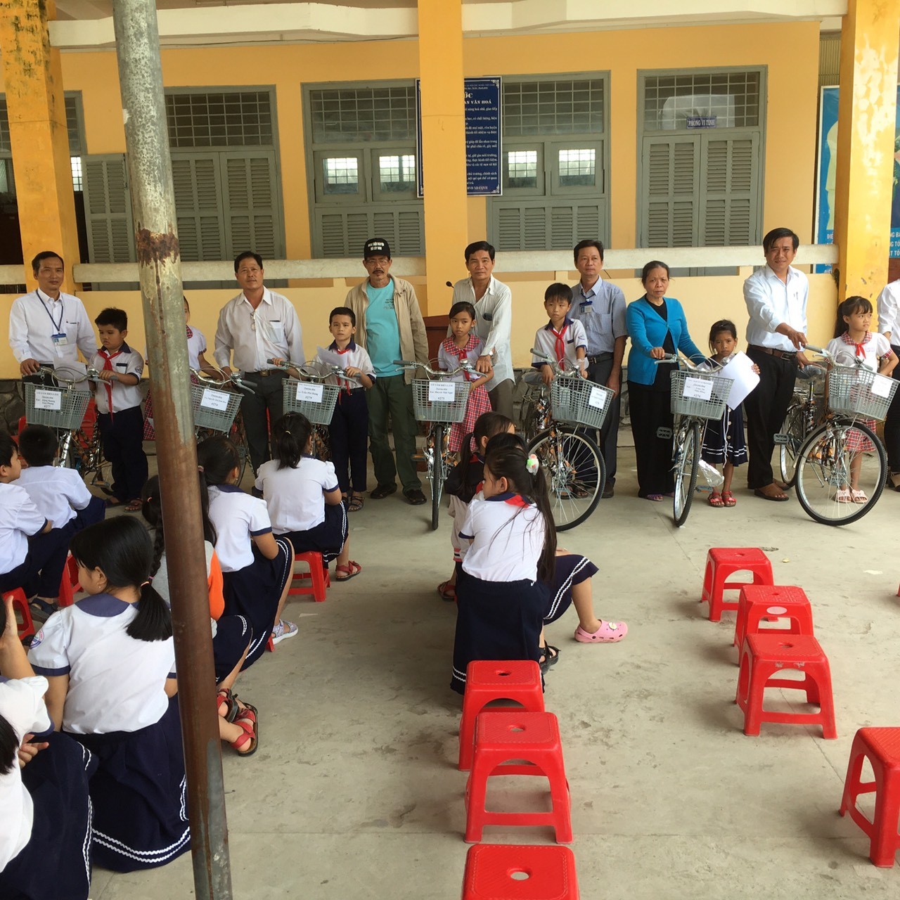 Hội NNCĐDCdioxin - Bảo vệ quyền trẻ em huyện Mỏ Cày Nam trao xe cho học sinh nghèo học giỏi tại Trường tiểu học Thành Thới A2