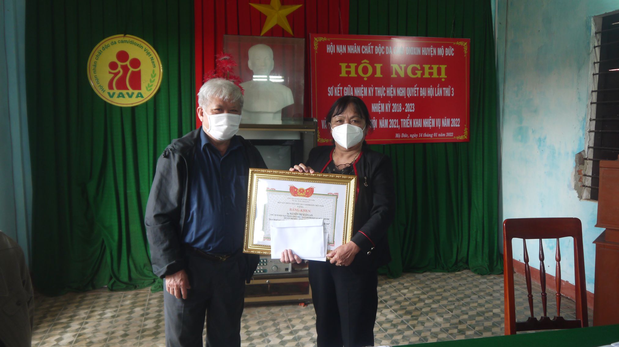 Nhân dịp này, thừa ủy quyền của Chủ tịch Hội NNCĐDC/dioxin Việt Nam, đồng chí Nguyễn Thanh Phương, Chủ tịch Tỉnh hội đã trao Bằng khen của Trung ương Hội cho cá nhân điển hình tiên tiến giai đoạn 2016-2021.